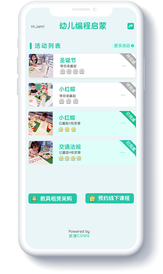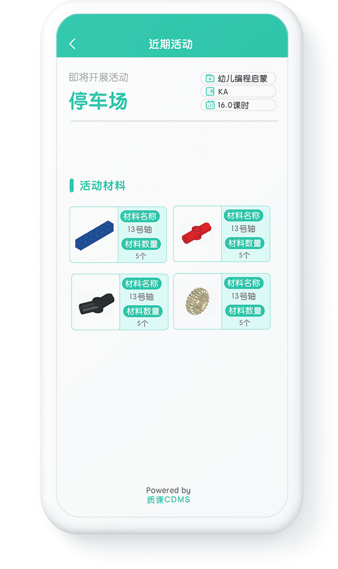 「质课CDMS」,帮助广大机器人教育机构摆脱课程资源无法集中管理和持续改进、教师流动导致教学服务中断、课程和教学质量难以把控等巨大困扰,不仅承载了儿童和青少年机器人教育完整的课程体系和丰富的教学资源,还提供了支持线上线下融合运营所需要的课前课中课后服务标准化和自动化管理功能。